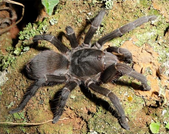 Possui a cor de tom negro fosco, as vezes apresentando-se no padrão cinza anegrado ou marrom anegrado, variando de exemplar ou proximidade com a época de ecdise, as articulações das patas as vezes se apresentam totalmente cinzas, pretas, ou pardas. As fêmeas atingem aproximadamente 13-14 cm quando adultas, de hábitos fossoriais são ótimas cavadoras, sendo que em determinadas épocas se entoca, permanecendo dentro desses buracos por longos períodos. Os machos são pequenos, dificilmente ultrapassando os 8 cm.
