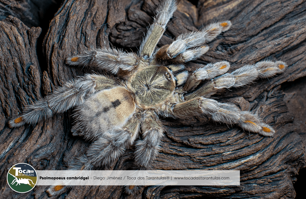 Comportamento: Embora ela frequentemente escolha a rota de fuga, a Psalmopoeus cambridgei tem uma reputação de ser muito defensivo e imprevisível. Procurando por uma rota de fuga, os animais às vezes ousam soltar ou dar pequenos saltos. A provocação persistente pode levar irrevogavelmente a várias picadas consecutivas. A aranha constrói uma bolsa de teia tubular típica.