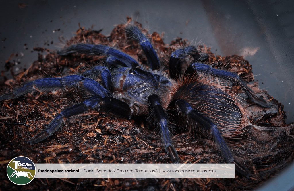 Pterinopelma sazimai, também conhecida como “tarântula azul brasileira”, é uma aranha comedora de pássaro maravilhosa devido à sua coloração e comportamento. Ela tem o nome do Dr. Ivan Sazima, o zoólogo brasileiro que foi o primeiro a descobrir a espécie em 1971 e investigar a espécie por 10 anos com Sylvia Lucas no instituto butantan. Quando a tarântula morreu, ela ainda não havia sido descrita. Em 2011, os três investigadores concluíram o trabalho do dr. Ivan Sazima. Pterinopelma é um gênero monofilético da clade Lasiodora (Vitalius e Nhandu), o que significa que eles provavelmente têm os mesmos ancestrais (fonte). Como primeira espécie brasileira, a Pterinopelma sazimai foi adicionado no top 10 do IISE em 2012, em sua busca para inspirar, incentivar e possibilitar o avanço da taxonomia e exploração das espécies terrestres. A aranha é uma verdadeira peça de exibição no hobby de animais exóticos no exterior, contrabandeada muitas vezes para a América do Norte e Europa. Isso em combinação com um habitat natural sendo destruído a cada dia mais, faz com que a aranha esteja localmente ameaçada. Para salvar a espécie, por favor, não colete animais, não coopere com o trafico ilegal de animais.