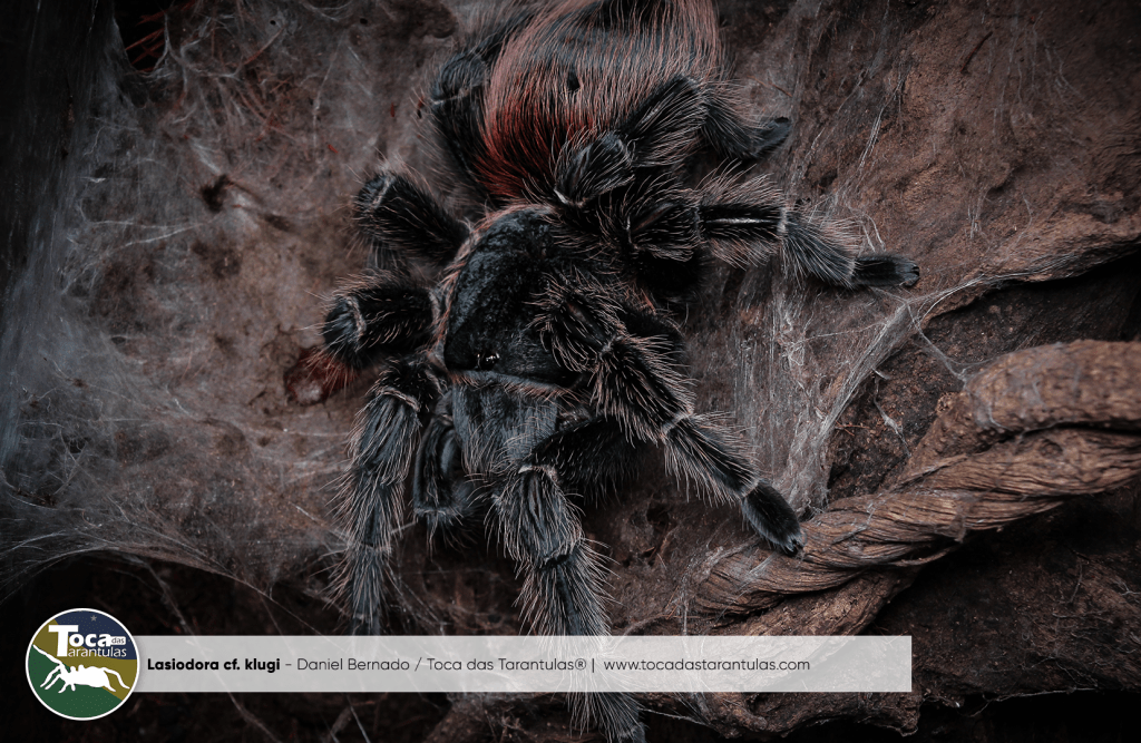 A Lasiodora klugi é semelhante a L. parahybana, mas a sua coloração é mais escura (preta) com o diferencial dos pelos abdominais serem bem avermelhados, quando mais velhas tendem a uma coloração mais desbotada, e o abdômen tende a cor de cobre.